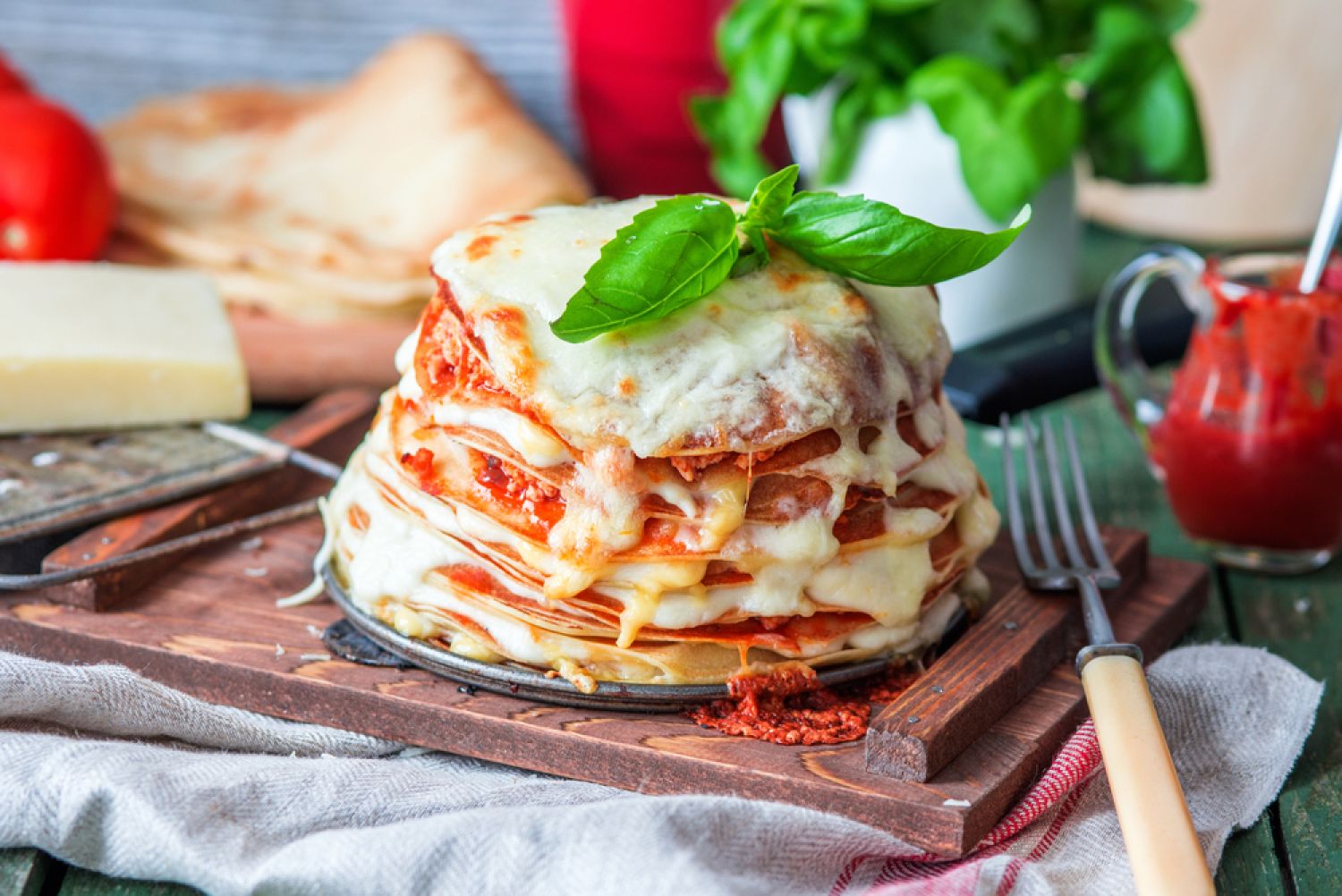 Terminer par les 2 dernières crêpes et parsemer de fromage râpé.